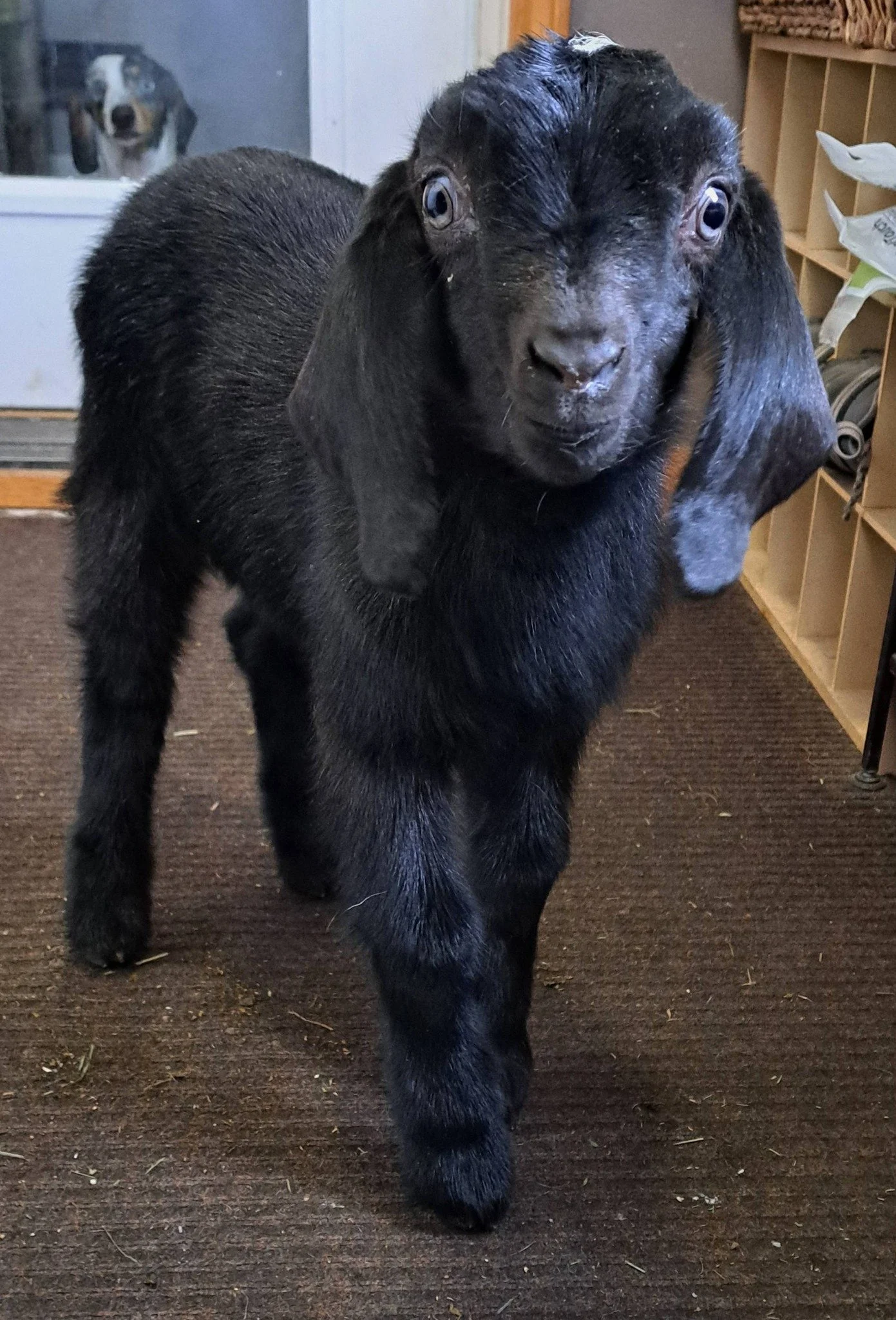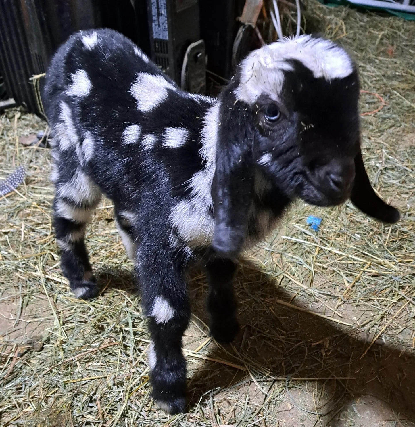 She is very well mannered on the milkstand, she gave 5-6 lbs of milk daily (about 3/4 gallon) last year as a 2nd freshener, trained for machine or milk pail (but she is short- so my milk pails didn’t fit for easy handmilking under her. I hand milked her straight into bottles off the side for the kids).